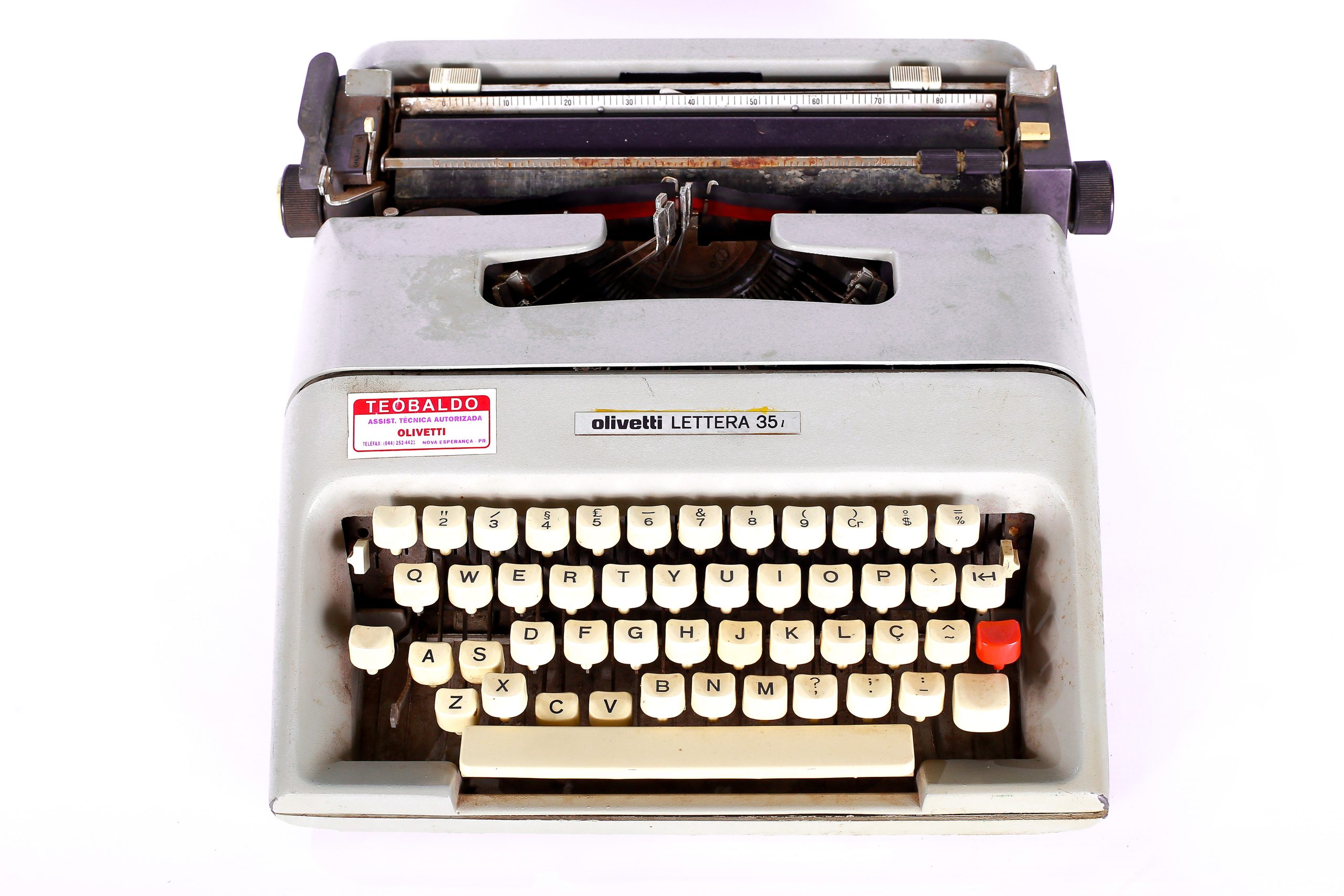 Máquina de Escrever LETTERA 35 lDepartamento de Culturaoutubro 20, 2025Localizado Documento M01 0060 (Máquina De Escrever LETTERA) Baixar MetadadosTítuloMáquina de Escrever LETTERA 35 lDescriçãoMáquina de Escrever pertenceu a APAE.Data do Registronovembro 24, 2021Data da Aquisiçãoagosto 8, 2019Tipo de AquisiçãoDoaçãoData da Avaliação/Referências Cronológicasoutubro 20, 2025Notas Sobre ConservaçãoBomMaterial/TécnicaFerro, Plástico e Metal.DimensõesMedidas Tridimensionais: Altura9,2 cm x Largura 34 cm x Profundidade 34,4 cm Circulares: Diâmetro x Espessura Peso 5,250KgProcedênciaFoi doada pela Associação de Pais e Amigos dos Excepcionais. APAE.IdentificaçãoNúmero de RegistroM01-0060SituaçãoLocalizadoNome da Identificação de ResponsabilidadeOlivetti México S.A.Classificação10.2 Equipamentos de Comunicação e Escrita.LocalMéxico.