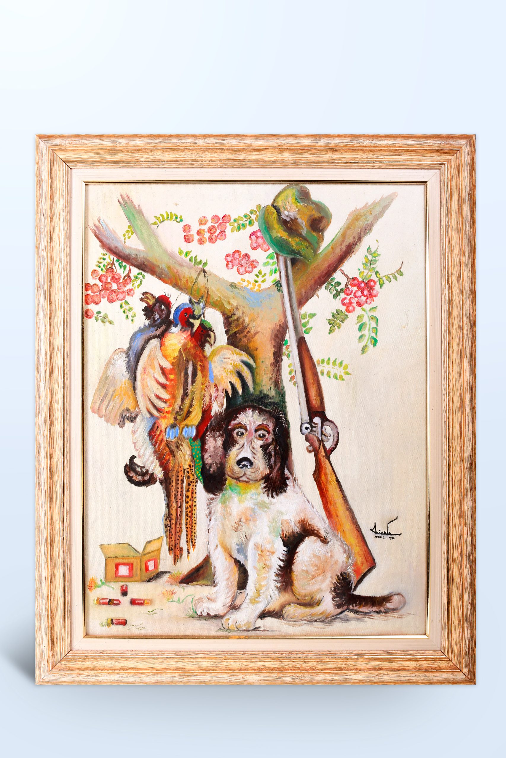 Quadro: Caçada – 02Departamento de Culturaoutubro 30, 2025Localizado Documento M01 0261 (Quadro Caçada) Baixar MetadadosTítuloQuadro: Caçada - 02DescriçãoTela pintada pela artista Oriana Daniel.Data do Registrofevereiro 14, 2023Tipo de AquisiçãoDoaçãoData da Avaliação/Referências Cronológicasoutubro 30, 2025Notas Sobre ConservaçãoBomMaterial/TécnicaTecido Tela para Pintura, vidro e madeira.DimensõesMedidas Tridimensionais: Altura 78cm x Largura 62cm x Profundidade 3cm Peso : 4,7 KgProcedênciaDoada por Shirley Martos Daniel.IdentificaçãoNúmero de RegistroM01-0261SituaçãoLocalizadoIdentificação de ResponsabilidadeAutorNome da Identificação de ResponsabilidadeOriana Daniel.Classificação02.6 Pintura.LocalNova Esperança - PR.Datajaneiro 1, 1997
